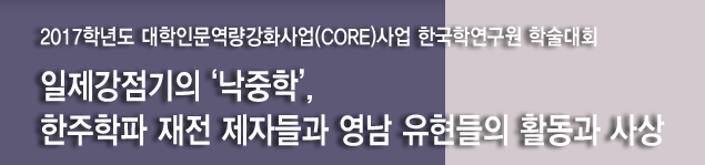 일제강점기 낙동강 중류 지방에는 이진상의 한주학을 이은 재전 제자들과 더불어 학맥을 달리 하는 몇몇 유현들이 낙중학과 전통 유학을 계승한 가운데 다양한 학문적 활동과 사회적 실천 활동을 전개하였습니다. 그들은 근대로 이행한 시대상황 속에서 전통유학을 정리하는 한편 근대 학문으로 전환을 모색하는 등 가교의 역할을 담당하였으며, 일제강점이라는 엄혹한 현실 아래 유학자로서 정체성을 유지한 채 민족 문화의 계승과 독립을 향한 활동을 펼침으로써 해방 후에 이르도록 낙중학의 여운을 짙게 남겼습니다. 발표 수가 총 9개로 다소 많지만, 이것으로 8차에 걸친 낙중학 기획의 대미를 장식하고자 합니다. 여러분의 많은 관심과 참여를 부탁드립니다.