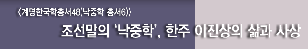 『조선말의 ‘낙중학’, 한주 이진상의 삶과 사상』은 조선 말, 낙동강 중류 일대에서 ‘낙중학’을 부흥시켜 19세기에서 20세기에 걸쳐 한국 최고 ․ 최대의 학파를 형성한 한주(寒洲) 이진상(李震相, 1818~1886)의 생애와 철학 ․ 사상을 고찰하여 ‘낙중학’이 조선 말 한주 이진상에 의해 부흥되고 고려 말부터 일제강점기에 이르도록 학파적 연원이 깊으며 계승관계가 지속적이었음을 밝히고자 한다.