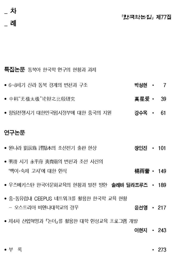 『한국학논집』77집이 2019년 12월 30일자로 발간되었습니다. 『한국학논집』77집에 게재된 논문은 아래와 같으며 논문 원본은 한국학연구원 홈페이지