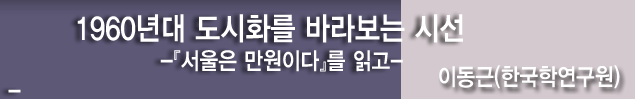 『서울은 만원이다』(이하 『만원』)는 1960년대 서울을 배경으로 한다. 1960년대 서울은 8·15해방과 6·25전쟁을 지나 4·19의거와 5·18혁명으로 이어지는 격동기의 중심에 자리 잡고, 자유 민주주의라는 서구 모델을 받아들여 새로운 사회로 나아간다. 1966년 서울은 아홉 개의 구에, 가·동이 380개나 된다. 동쪽으로는 수유리, 서쪽으로는 영등포, 동남 쪽으로는 천호동, 서남쪽으로 시흥까지 넓은 면적이지만 370만이 살기에는 부족했다. 이처럼 서울은 포화상태이지만 “일자리는 없고, 사람들은 입만 까지고 약아지고, 당국은 욕사발이나 먹으며 낑낑거리고, 신문들은 고래고래 헛소리만 지르는” 등 포화상태를 감당하지 못하고 어수선하다. 정치도 경제도 폭발적인 인구 유입을 뒷받침하지 못하고, 한발 늦게 따라오는 형국이다.