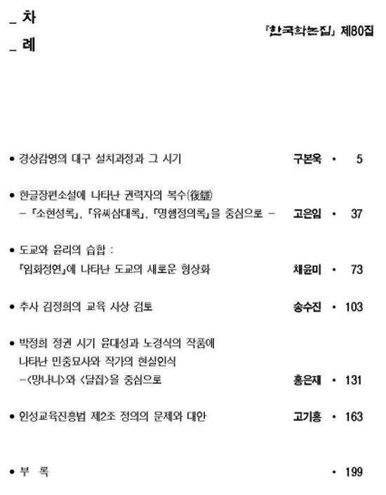 『한국학논집』80집이 2020년 9월 30일자로 발간되었습니다. 『한국학논집』80집에 게재된 논문은 아래와 같으며 논문 원본은 한국학연구원 홈페이지