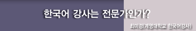 세종대왕이 창제하신 한글의 우수성은 이제 전 세계인들이 알게 되었다. 그리고 한류와 더불어 한국어를 배우려는 세계인들이 넘쳐나고 있다. 그러나 한국어의 치솟는 인기에 비해, 한국어 강사의 전문성은 우리 사회에서 아직 인정을 받지 못하고 있다. 한국인이면 누구나 한국어를 가르칠 수 있다고 생각하는 사람들이 여전히 대다수이다. 의사는 의학 분야에서 전문가이듯, 한국어 교육에선 한국어 강사가 전문가이다. 한국어를 모르는 외국인과 소통하는 방식에 있어서 한국어 강사만한 사람이 또 있겠는가. 의사, 변호사, 전기 기술자, 영어 강사, 한국어 강사… 이렇게 사회의 다양한 분야에서 전문성이 깊어지고 공유될 때 우리 사회 전체의 전문성도 더욱 강화될 것이다. 한국어 강사, 우리는 전문가이다.