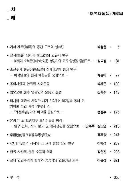 『한국학논집』83집이 2021년 6월 30일자로 발간되었습니다. 『한국학논집』83집에 게재된 논문은 아래와 같으며 논문 원본은 한국학연구원 홈페이지