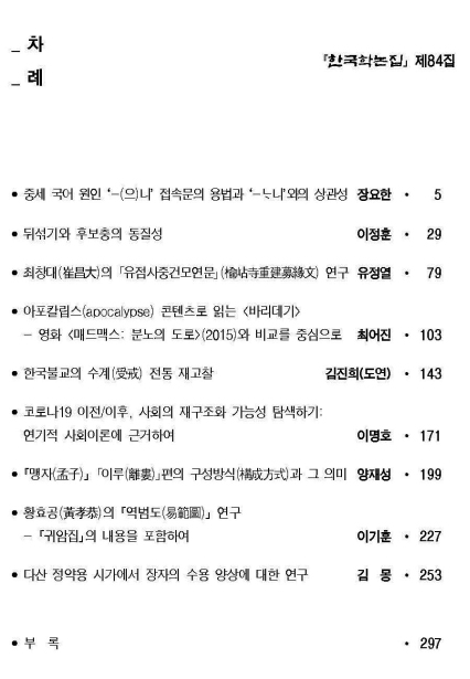 『한국학논집』84집이 2021년 9월 30일자로 발간되었습니다. 『한국학논집』83집에 게재된 논문은 아래와 같으며 논문 원본은 한국학연구원 홈페이지