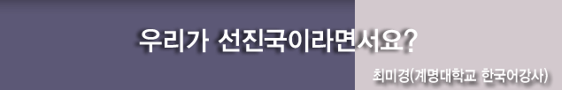 2021년 7월, 유엔 산하기구인 유엔무역개발회의(UNCTAD)는 대한민국을 공식적으로 개발도상국에서 선진국으로 국제적인 지위를 변경하였습니다. 선진국이란 단순히 돈이 많은 나라가 아니라 정치체계, 격조 높은 문화를 갖출 때 가능한 일입니다. 또한, 소수자들의 인권을 챙겨주는 나라가 될 때, 진정한 선진국이라 할 수 있을 것입니다. 글로벌 시대를 맞아, 선진 대한민국이 지속가능한 경제 발전을 하려면 외국인을 포함한 소수자 인권을 존중하는 의식이 무엇보다 필요한 때가 아닌가 생각합니다. (최미경 anuda21@daum.net)