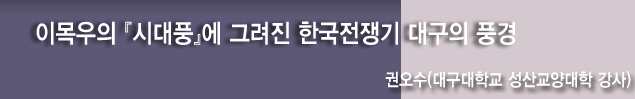 물론, 당대 피난 및 종군활동을 했던 문인들의 기록에서도 한국전쟁기 대구의 모습을 살펴볼 수 있다. 최정희, 윤금숙, 최인욱, 고은 등의 문인들 역시 대구에 머물며 대구의 모습을 기록했으나, 임시 거처로서의 대구의 모습 혹은 외지인으로서 경험한 대구의 모습을 제시하고 있다는 점에서 『시대풍』과 차이를 보인다. 물론 이목우의 기록과 함께 당대 문인들의 대구에 대한 기록은 모두 지역의 성격을 규명함에 매우 중요한 자료임은 분명하다. 그러나 이목우의 기록은 외부의 시선으로 바라본 대구가 아닌, ‘대구에서 바라본 대구’라는 점에서 특별하다.