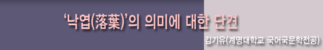 학생들은 고심에 고심을 거듭한 결과, ‘나무에서 이파리가 떨어지는 그 순간’부터 ‘낙엽’이라고 답변하였다. 당시 그러한 답변이 타당한지를 국어학적으로 어떻게 설명할 수 있을까 고민하다가, 어설픈 결론이나마 학생들과 나누게 되었다. 일단, ‘낙엽(落葉)’과 비슷한 구성을 가진 단어로 ‘낙화(落花)’가 있다. 계열관계를 고려한다면, 두 단어의 차이는 단지 ‘떨어지는(落)’의 대상이 ‘잎(葉)’인지, 아니면 ‘꽃(花)’인지에 따라 달라진다. 그러나, 두 단어는 공기(共起)하는 서술어에서 차이를 보인다. 예를 들어,