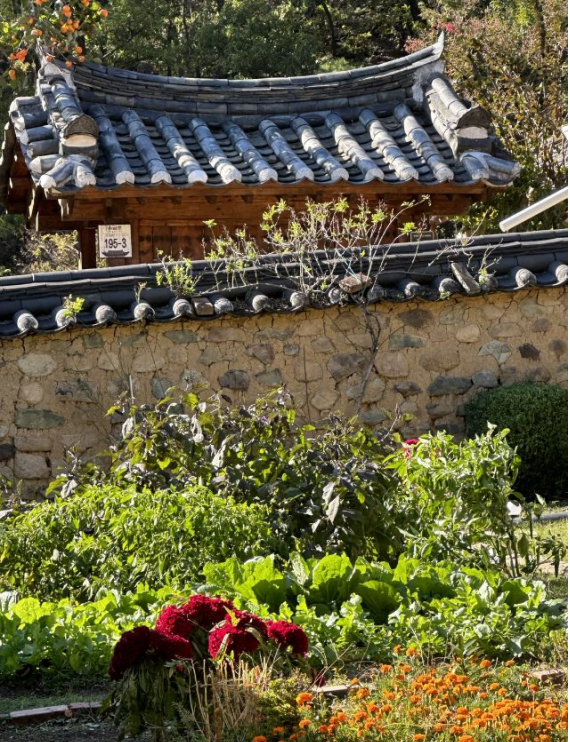 본격 탐방을 위해 마을 초입에 들어섰다. 수호의 상징물처럼 큰 나무가 우람하게 서 있는 것과 달리 집들과 골목은 좁은 길에 기대어 있었고, 흙벽과 기와들과 마른 나뭇잎들이 고요하고 여유로운 풍광으로 다가왔다. 현지인들이 살고 있어서 조용히 살펴야한다는 안내에 따라 우리는 와당의 문양을 살피고 담장 너머의 살림살이를 기웃기웃하면서 가만 걸었다. 그러다 마을 중간쯤에 이르면서 출입이 허가된 빈 고택으로 들어섰는데, 집 안으로 막 들어서면서 나는 거짓말처럼 어느 세계가 열리는 느낌을 받았다. 가을빛에 붉게 타오르는 맨드라미와 돌멩이로 덧대어 만들어놓은 꽃밭의 해바라기 그리고 그 가장자리로 뻗어 올라간 감나무, 바람에 제 잎을 붉힌 나뭇잎. 나의 옛집 모습이었다. 고향 집은 꽃을 좋아하는 가족을 위해 부모님이 만든 꽃밭이 있었고, 닭 벼슬을 닮은 맨드라미와 해바라기, 그 뒤로 까맣게 뻗어 올라간 감나무 가지들이 유년의 가을 풍경으로 자리 잡았다. 나는 나도 모르게 그때 그 모습 속에 있다는 착각을 하였다. 불현 듯 방문을 열고 ‘이제 오냐’며 나를 부를 것만 같은 얼굴도 스쳐갔다.